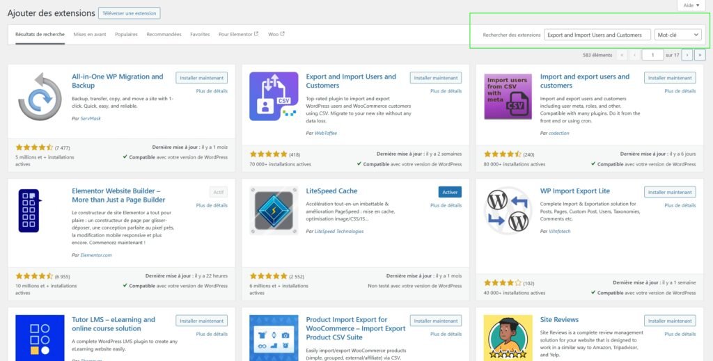 Dans « Rechercher des extensions », taper la recherche : Export and Import Users and Customers