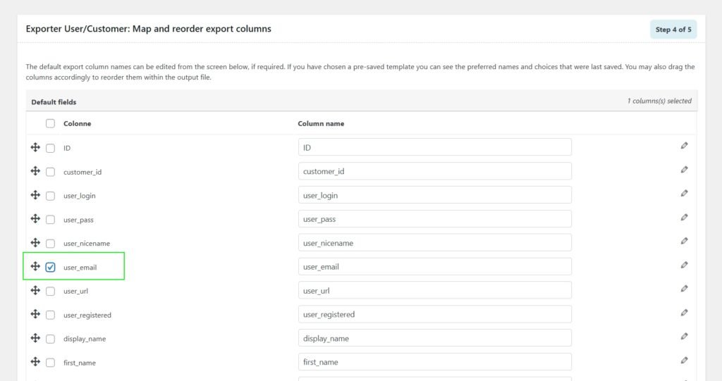 Sauf si vous souhaitez appliquer un filtre, vous pouvez cliquer directement sur « Step 4: Map and reorder export columns »