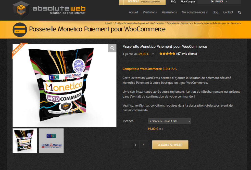 Le prix est exagérément cher cependant, la solution est à jour et semble le suivre rapidement les évolutions de Monetico et WooCommerce.