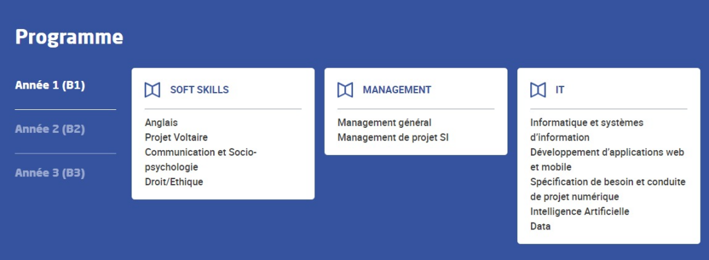 Voici un exemple du programme de la première année du bachelor en développement web :